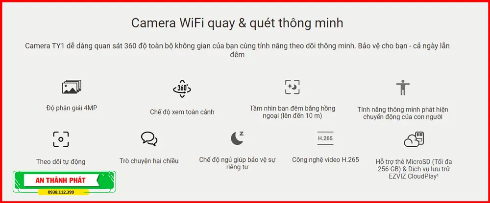 công nghệ chính Hãng IP Wifi Phù hợp công trình lớn Wifi Ezvizcông nghệ chống trộm thông minh hiệu quả cho gia đình cửa hàng Xem ban đêm Hồng Ngoại 30m Dùng cho dự án dân dụng Chất Lượng Hình 2.0 MP FULL HD 1080P Tiết kiệm chi phí Tại An Thành Phát |